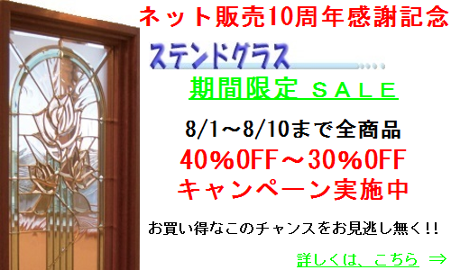 ステンドグラス キャンペーンのご案内!! 2016年07月25日 ステンドグラス キャンペーンのご案内!! ステンドグラス キャンペーンはこちらをクリック ぜひ商品ページもごらんください! «前 次» スタッフ日記