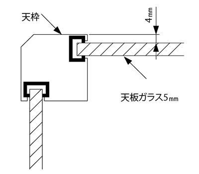 ■天板ガラス納まり図(※どちらか一方をお選びいただけます。)
