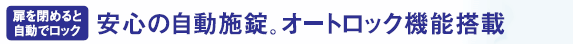 | 1. | 扉を閉めると自動でロック、オートロック機能搭載 |