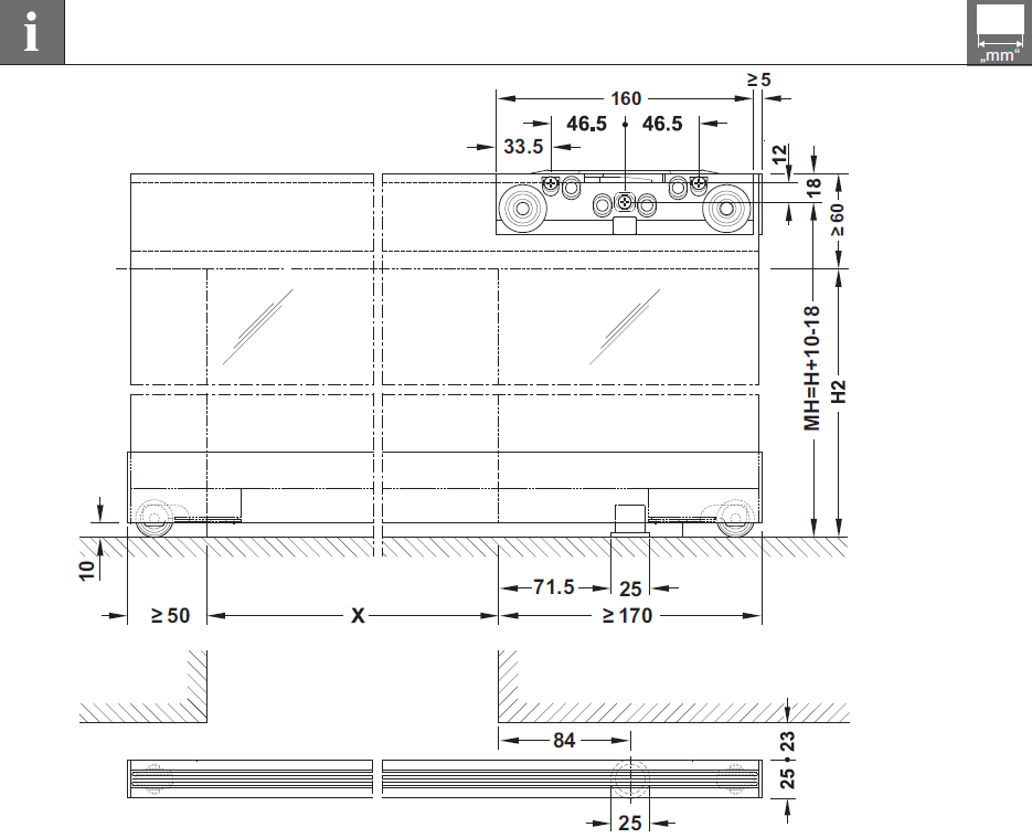 ●調整範囲: 調整可能なドアの高さ+2 mm