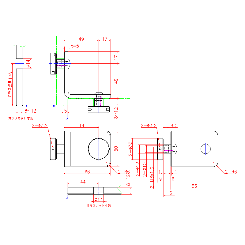 ・国内の強化ガラス穴あけ加工寸法に対応しています。